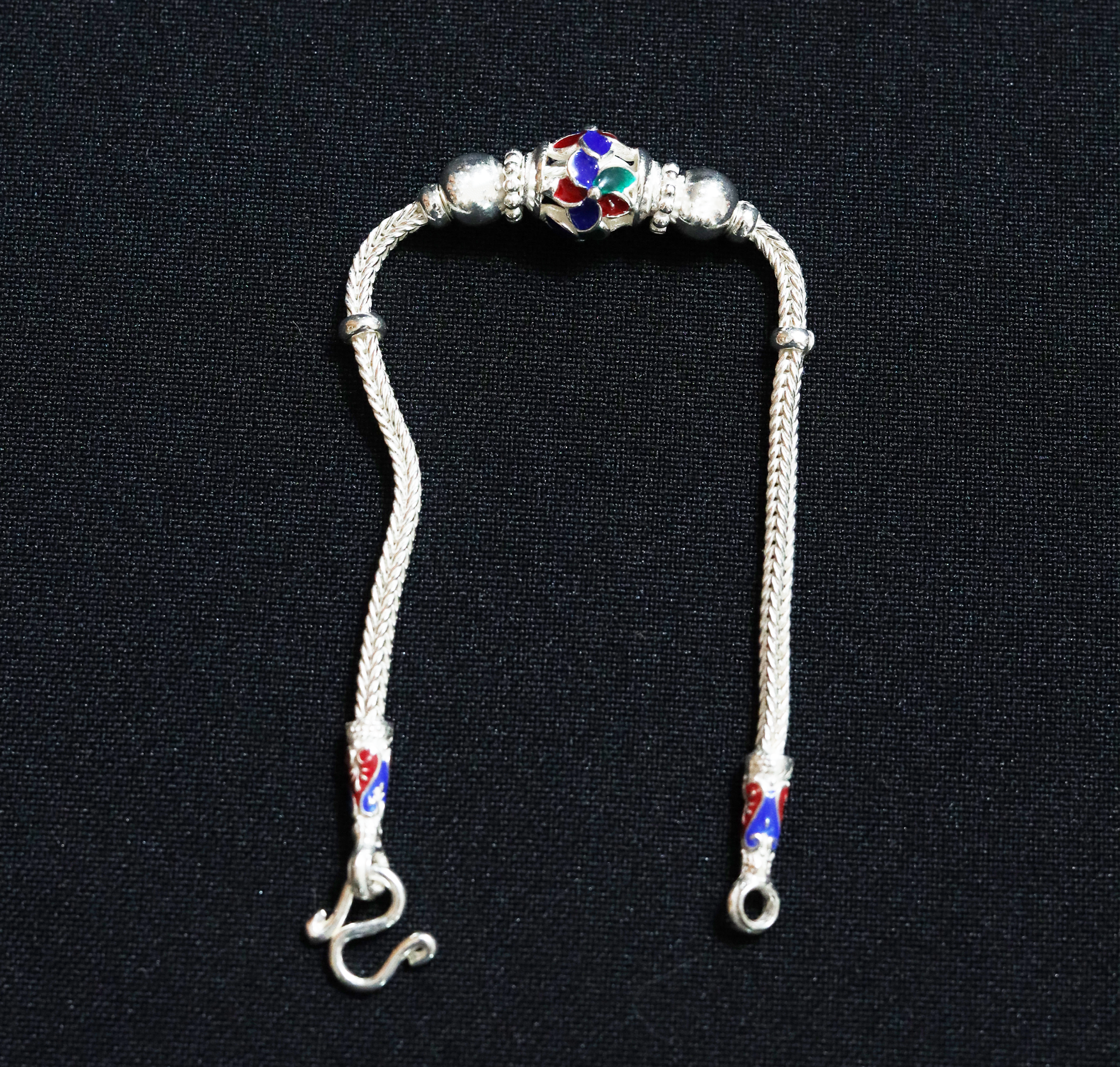 Material: Silver & Resin Design & Detail: Silver weaved, hammered to create pattern and resin-colored.